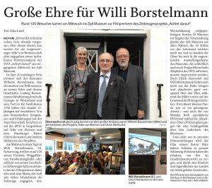 Im Januar 2017 begann Silke v. Bremen den Keitumer Wilhelm Borstelmann ( geb. 1927) zu interviewen, dessen Vater 1942 im KZ Groß Rosen ermordet wurde. Gemeinsam mit dem Pastoren i.R. Ulrich Hentschel aus Hamburg, entwickelte sie das Zeitzeugenprojekt „Achtet darauf…“. Der Landesbeauftragte für politische Bildung in Schleswig-Holstein, Dr. Christian Meyer-Heidemann, förderte das Projekt, der Film wurde u.a. allen Schulen Schleswig-Holsteins zur Verfügung gestellt. Im Juni 2019 wurde der Film im Sylt Museum der Öffentlichkeit vorgestellt.